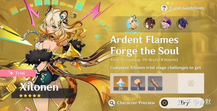 纳茨卡延的铁匠,声名远扬的锻造师,「古名」锻造技艺的继承人。其名**“Xilonen”在纳瓦语可以指“玉米须”、“毛茸茸的”,“Xilonen”**同时也是阿兹特克的一个农业神;而目前纳塔的自机角色均挂着「神名」。