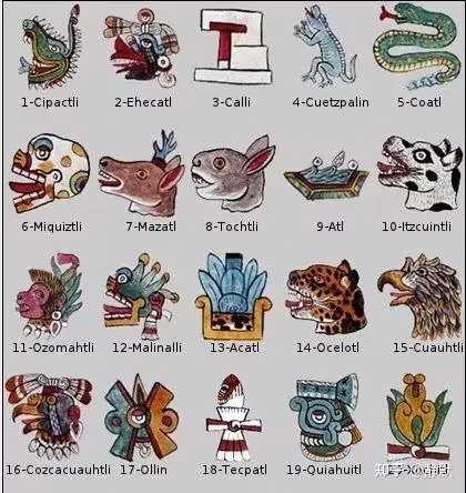 由20个日数标志、13个月份数字组合表示,共计13*20=260天。日历上使用的20个标志为不同生物和事物(列表加粗的为本文出现的事物):